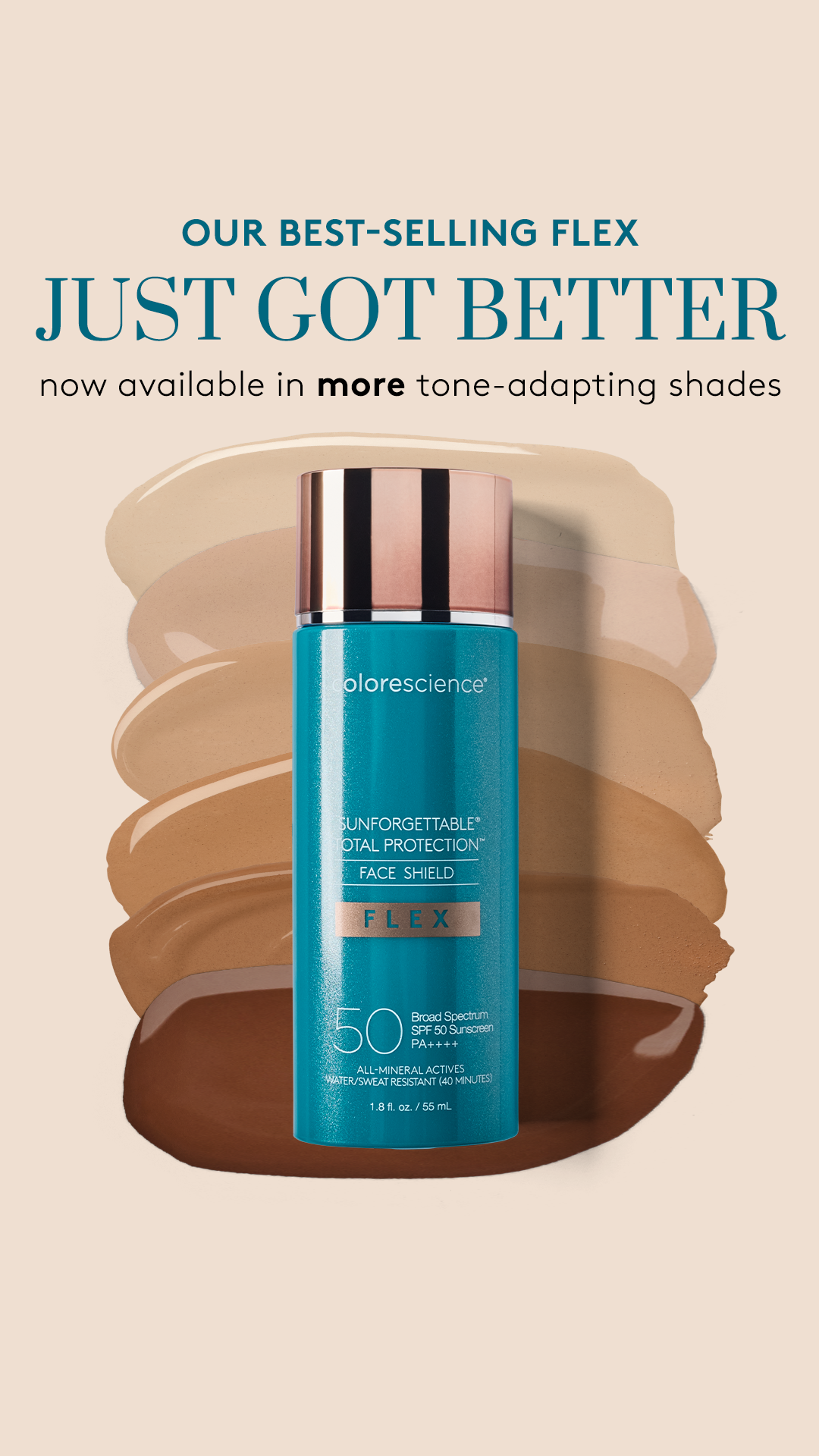 A lightweight all mineral sunscreen featuring innovative, iron oxide pigments that bloom in your fingertips to deliver tone-adapting buildable color coverage that immediately evens skin tone with a demi-matte finish.